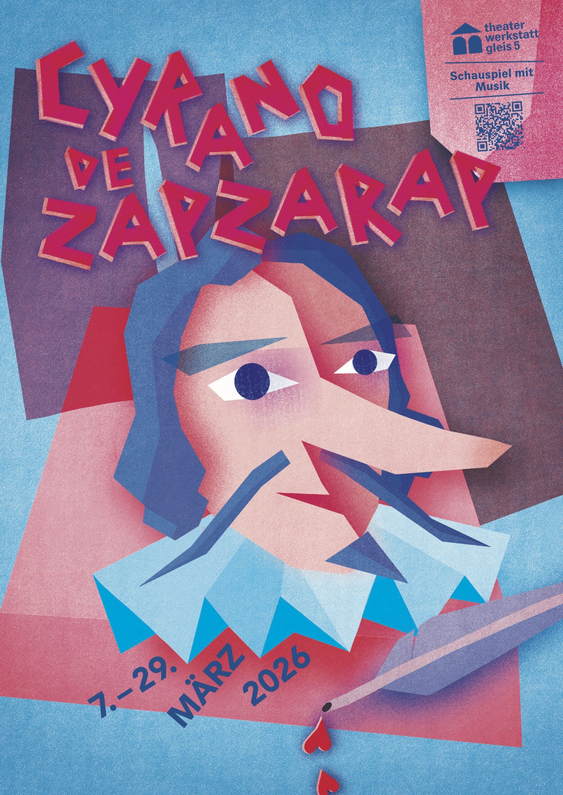 zapzarap spielt den tragikomischen Klassiker „Cyrano de Bergerac“ mit ursprünglich gut 40 Rollen in einer eigenen Adaption und nur zu viert, dafür mit viel Musik.